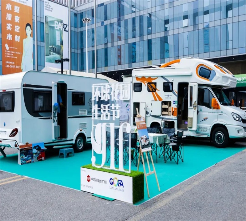 除了现场的精美展品展示外环球花园生活节在一楼橱窗位及户外广场打造了不同的户外场景展示不同的户外休闲方式