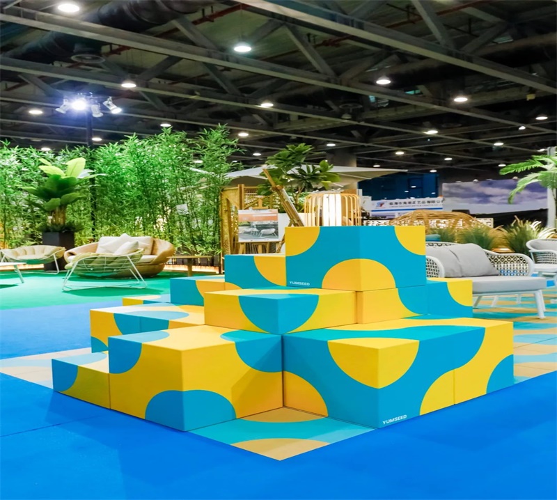 鑫潮家居使用环保、安全、防水的液态皮革,配合第六届环球花园生活主宾国丹麦,打造的积木王国,让人们乐在其中。